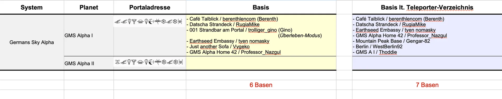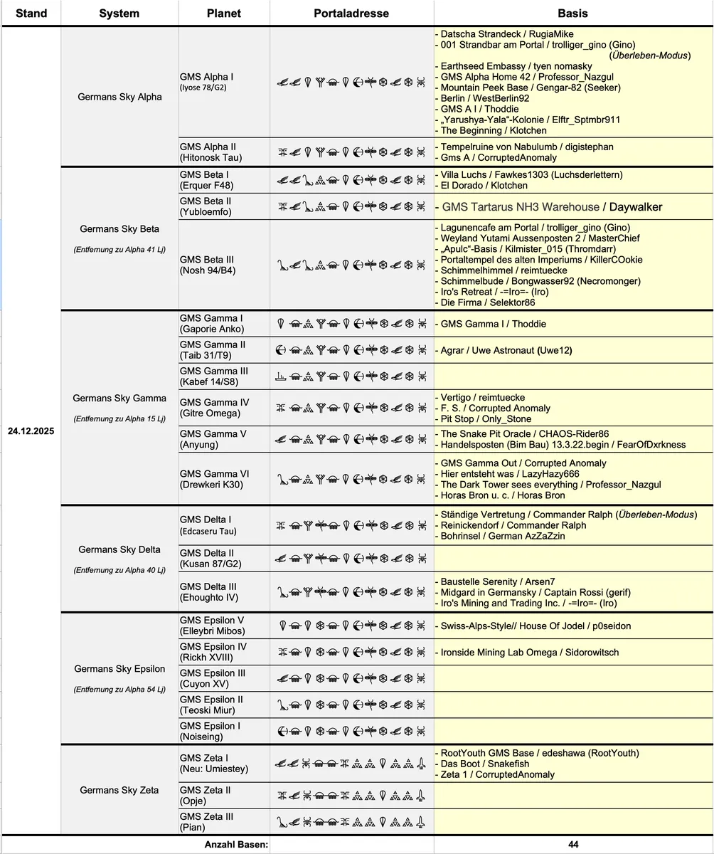 Hier gibt es eine Übersicht, die bei Bedarf aktualisiert wird. Ich bitte daher darum mich hier oder per PN mit Informationen zu füttern, sollte eine Basis gegründet oder gelöscht werden