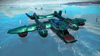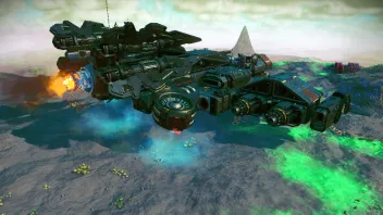 Er meint das du bei einer Corvette innerhalb der Atmosphäre den Pilotensitz verlassen kannst, zu deiner Laderampe gehen kannst und den roten Knopf an der Rampe drücken kannst um dich während die Corvette auf der Stelle schwebt auf den Planeten runter teleportieren kannst und auch wieder zurück. Das geht natürlich nur mit der Corvette. Da den normalen Schiffen die Bauteile und auch die Möglichkeit den Sitz zu verlassen fehlen.